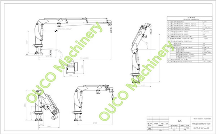 1t Telescopic 360 Degree Hydraulic Ship Deck Cranes